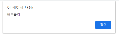 버튼을 클릭하면 아래와 같은 버튼클릭이라 쓰여져있는 알림창을 출력하게 한다.