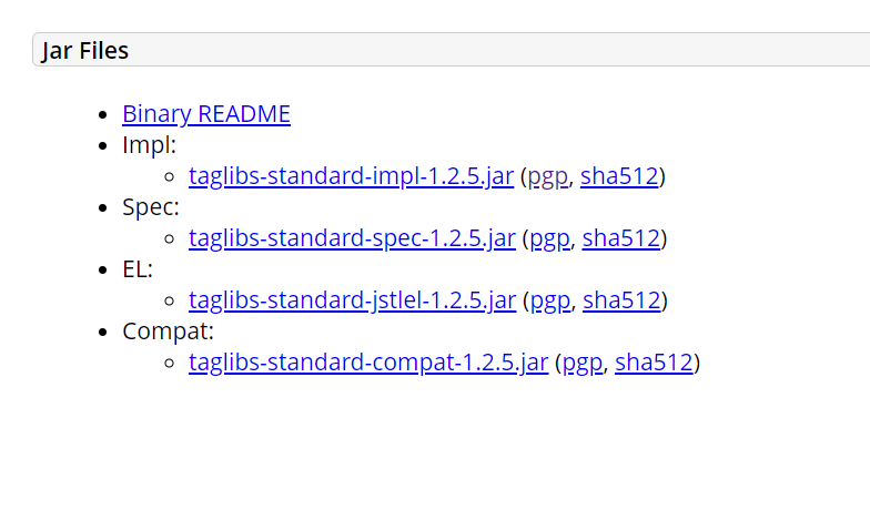 3. 이런창이 뜨면 밑에 Jar Files의 4개 파일을 모두 다운 받는다. (Impl, Spec, El, Compat)
